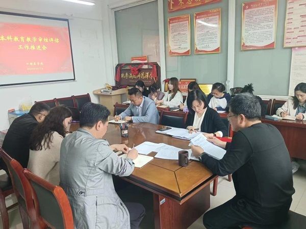 副院长姜丽娜首先通报了前一阶段各项评估工作的进展情况,重点介绍了教学资料包括教学大纲、试卷归档材料和教学文档的规范整理情况。陆坤针对当前阶段的工作提出具体要求,并明确了下一步的重点工作任务及目标责任。会上集中学习了教育教学审核评估相关知识和内容。