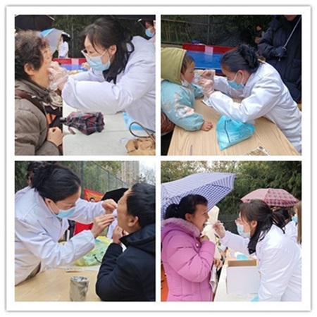 组织教工和学生党员及志愿者走进绿地花都社区开展口腔检查和口腔健康知识宣讲活动。