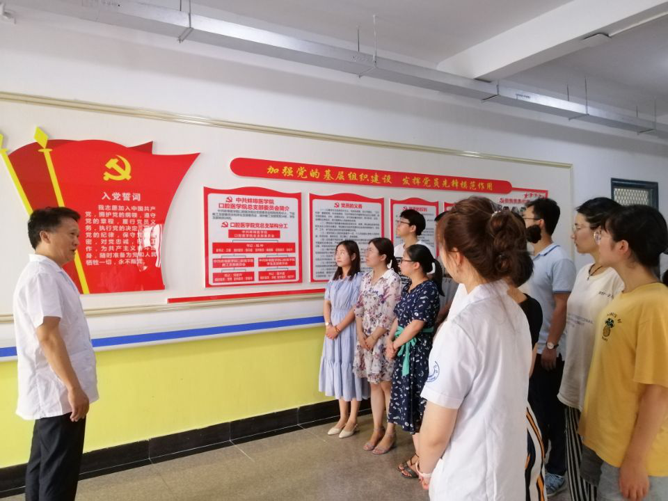 活动分为三个主题,首先由学生党支部书记裴丰庭老师对此次活动的目的做出介绍,希望全体党员同志都能够在今后的工作和学习中奋发向上、积极进步,时刻以党员的标准严格要求自己,争取在学院中起到模范带头作用。其次,由年级辅导员袁敏老师带领大家重温入党誓词,表达对党的忠诚。