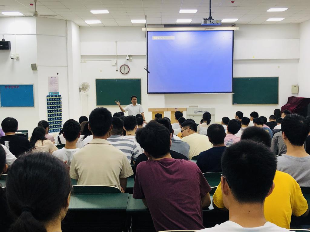 学生年级于9月2日下午17:00在T1教室召开新学期第一次年级大会,学院领导、年级辅导员和全体在校生参加会议。