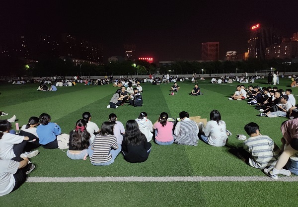 皎皎月光下,大家围坐一起,联欢会在两名新同学的动人歌声中拉开了帷幕。在欧乐影院