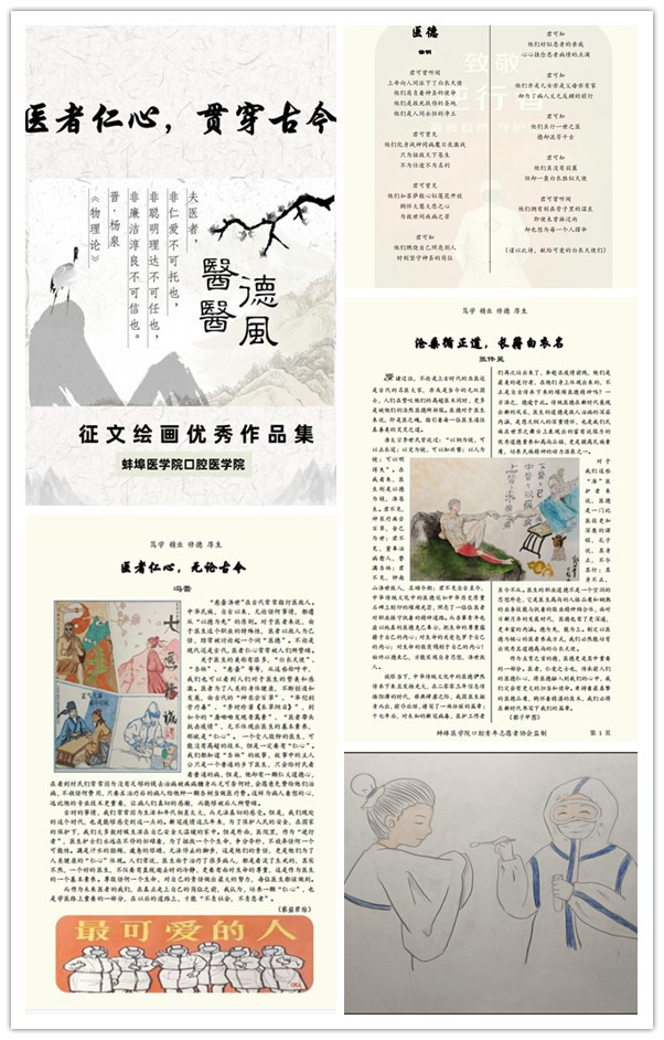 开展以“医者仁心,贯穿古今”为主题的征文活动,活动采用线上投稿的方式,通过颂医德、赞医风,弘扬敬佑生命、救死扶伤、甘于奉献、大爱无疆的崇高精神,传递至善至仁的职业价值,引领广大医学生不忘初心,坚守信念,恪守医德。此次共收集到同学们的优秀征文作品40多篇,编撰成“医者仁心,贯穿古今”作品集。