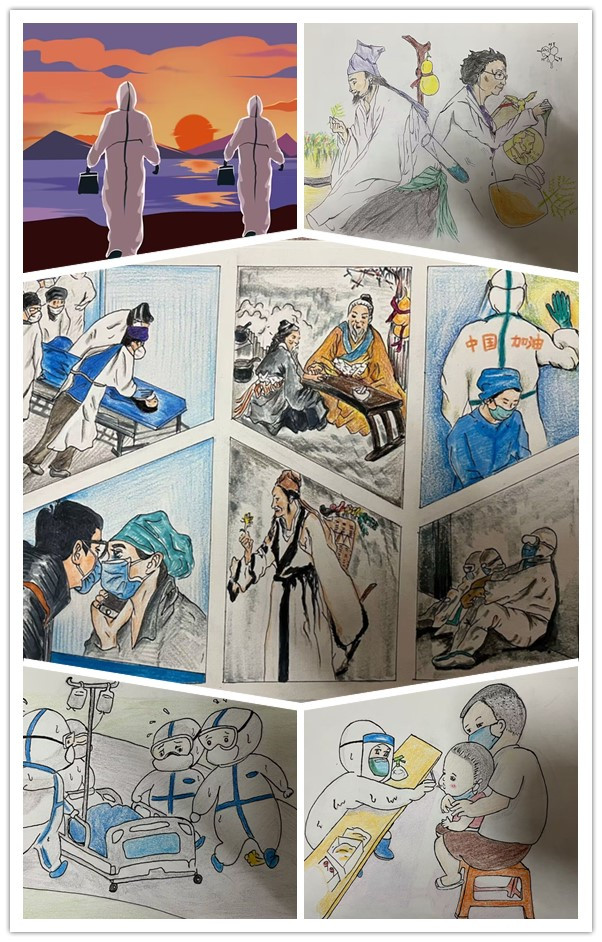 开展“传承医德文化,弘扬时代新风”主题绘画比赛。同学们积极投稿,将自己对传统医德文化的理解以绘画的形式表达出来。参赛作品以版画、素描、漫画和电脑制作等多种作画形式呈现,描绘了传统医德在抗疫中传承的美好画卷,加深了学生对抗疫精神和医德医风的理解。