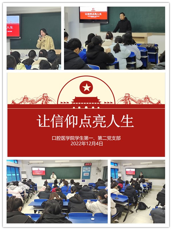 学生第一、第二党支部在114教室开展“让信仰点亮人生”党史故事宣讲会,2022级全体新生参会。