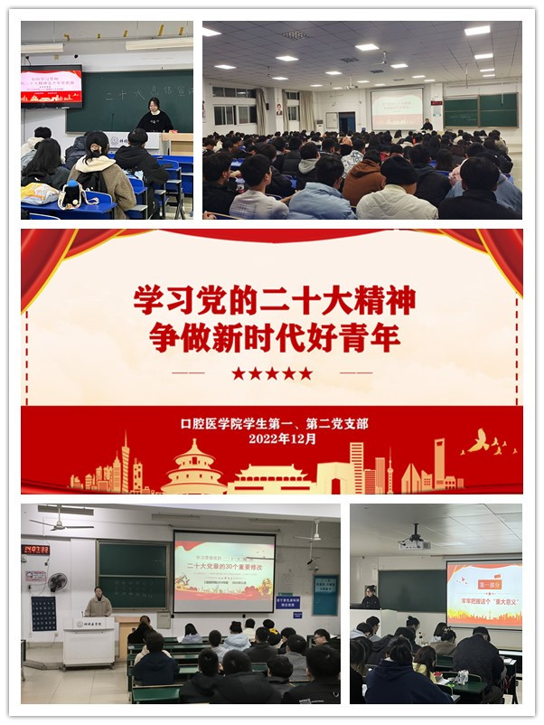 学生第一、第二党支部开展“学习党的二十大精神,争做新时代好青年”主题宣讲,宣讲会由班级思政委员主讲。