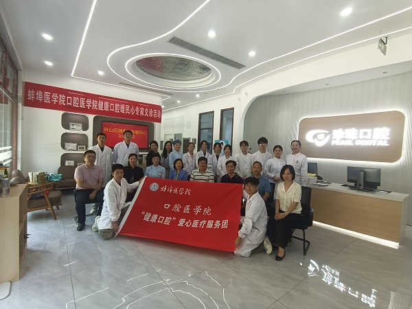 党委书记陆坤一行赴珍珠口腔门诊部开展见习检查、社会实践指导、访企拓岗。蚌山区卫生健康委员会党委书记、主任单桂云、蚌山区卫生健康委员会副主任李健、安徽省口腔医学会民营口腔医疗分会会长朱小龙莅临现场参加了活动。