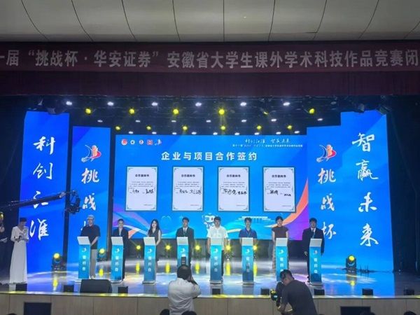 6月10日至12日,第十一届“挑战杯”安徽省大学生课外学术科技作品竞赛在安徽财经大学举行,我院2021级同学夏瑜蔓率领的团队脱颖而出,凭借《AR50超效速凝海绵——高端可吸收止血材料领航者》项目,一举斩获大赛一等奖,并与我省某生物企业现场签署合作协议,实现学院在“挑战杯”赛事成果转化领域的重大突破!