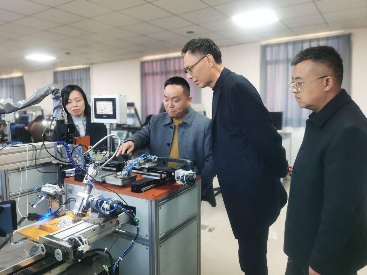 一行深入参观了公司的研发中心和生产车间,详细了解了企业在口腔医疗器械领域的创新成果、先进生产工艺及质量管控体系。随后与公司相关人员举行了产学研座谈交流会。双方就人才培养、毕业生就业、技术合作等方面进行深入交流和探讨。公司负责人表示,与高校建立长期稳定的合作关系是企业吸纳新鲜血液、推动技术创新的重要途径。孙文兵强调,高校的根本任务是立德树人,最终目标是培养出符合社会需要的高素质专业人才,通过“访企拓岗”走进企业一线,能够更直接、更精准地把握市场脉搏,从而反哺教育教学,增强人才培养的针对性和适用性。座谈会就校企合作及奖学金设立达成初步意向。双方共同表示,将以校企合作为契机,通过设立专项奖学金,激励学生成长成才,同时也优先为优秀毕业生提供就业岗位,实现人才培养与就业的有效联动。